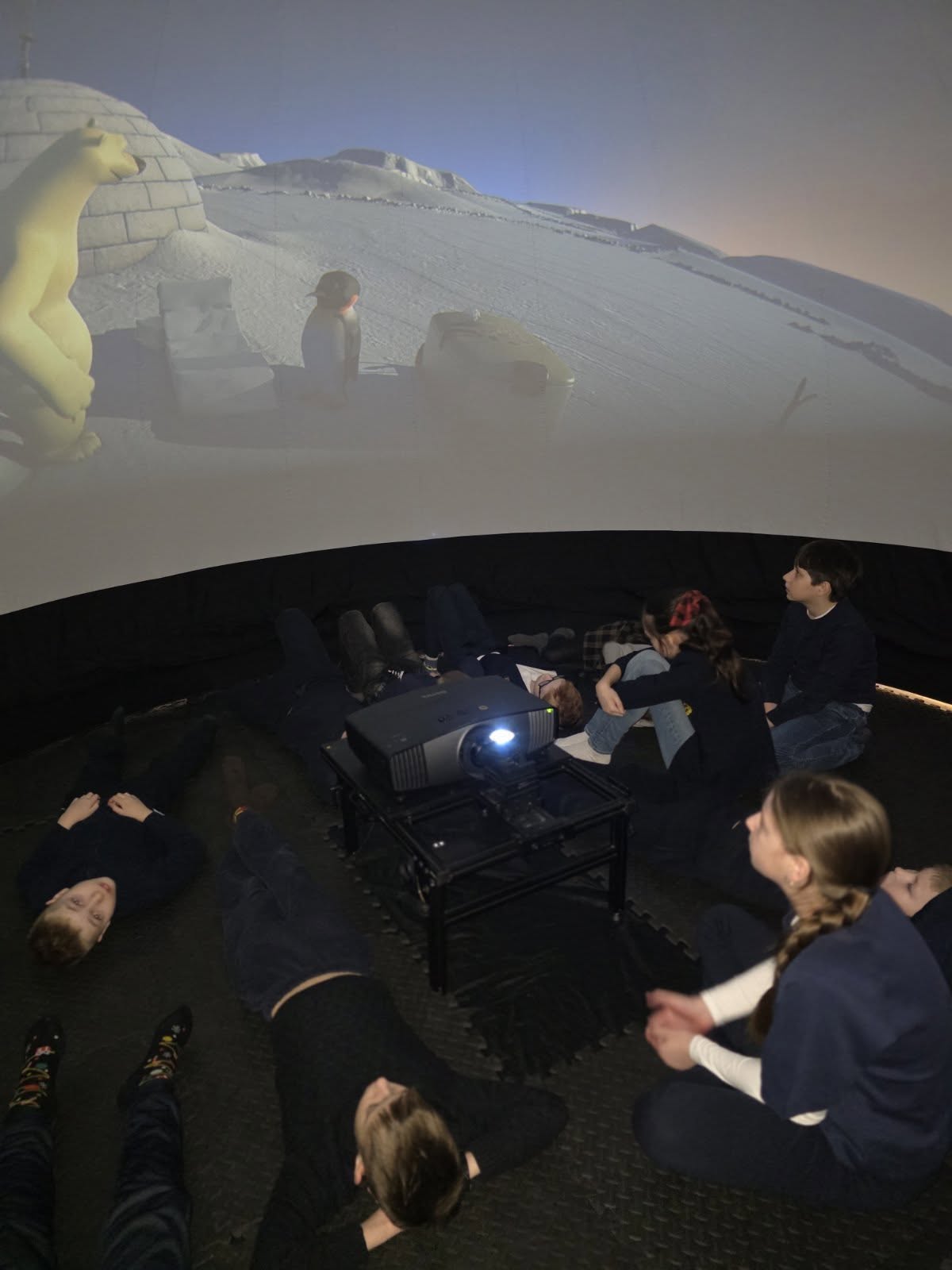 Vasario 27 d., 3A klasės mokiniai žiūrėjo Sferinio Kino programą „Poliarinė naktis“. Filmo metu jie susipažino su pagrindinėmis astronomijos sąvokomis – sužinojo apie